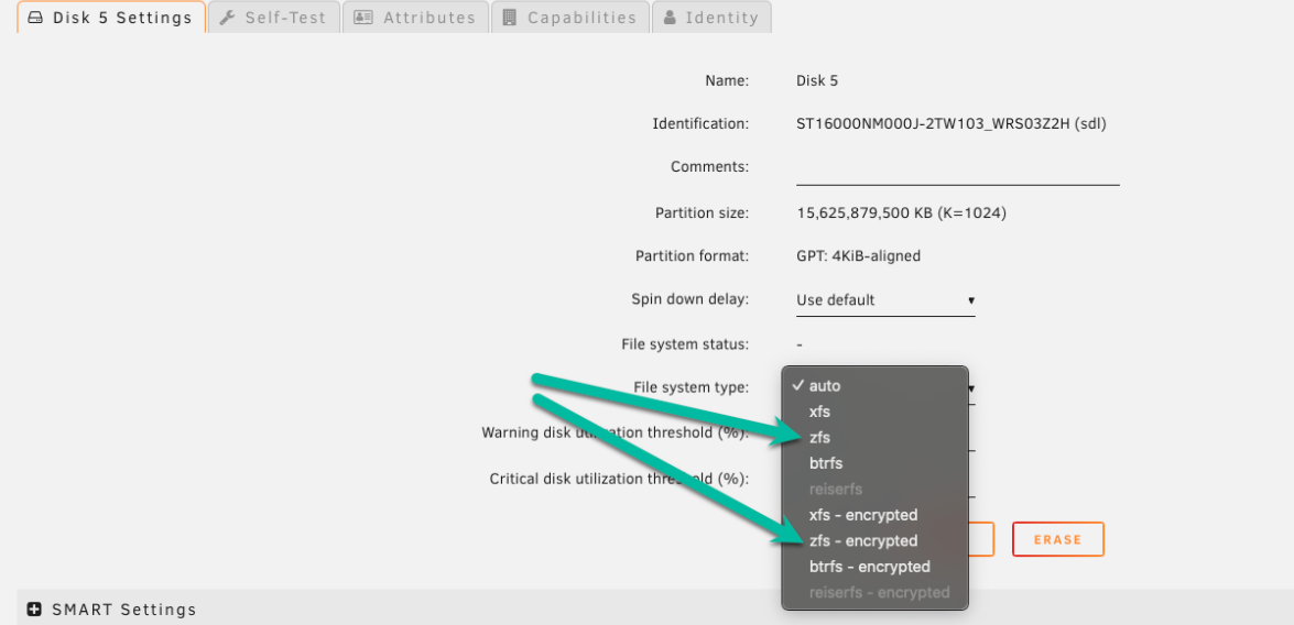raptor) para abrir su pantalla de configuración. - Establezca el tipo de sistema de archivos a